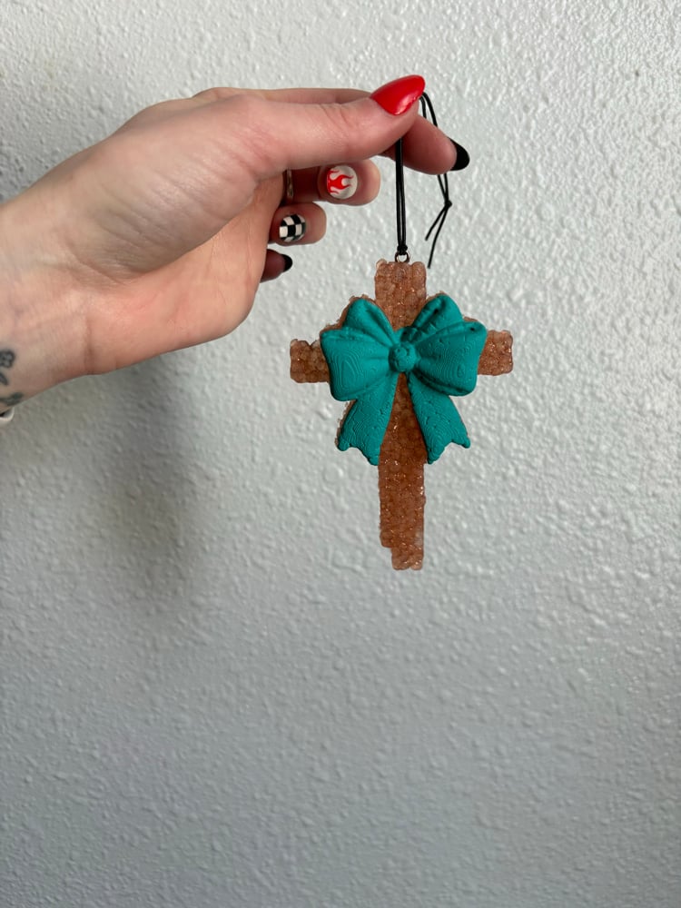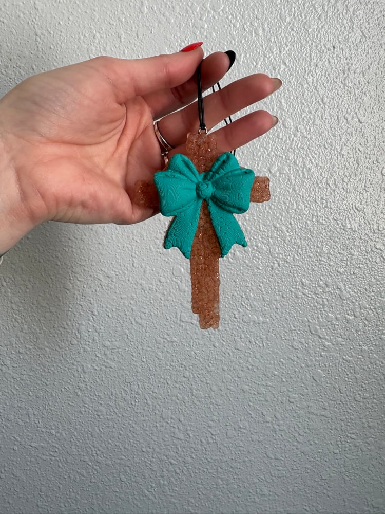 {April Fresh Scented} Teal Bow Cross Freshie